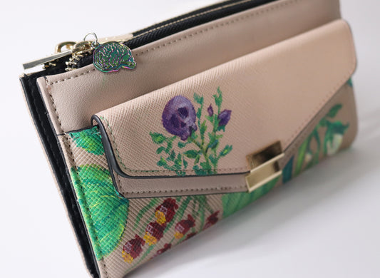 Floral Skulls - Hand Painted Up-cycled Bifold Wallet - One of a Kind