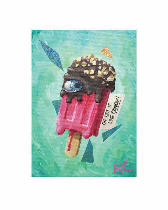 Eye scream, you scream, we all scream for ice cream. Signed and numbered giclee print of the Sweet #1 mixed media painting on 8x10” archival satin paper. Edition of 10.